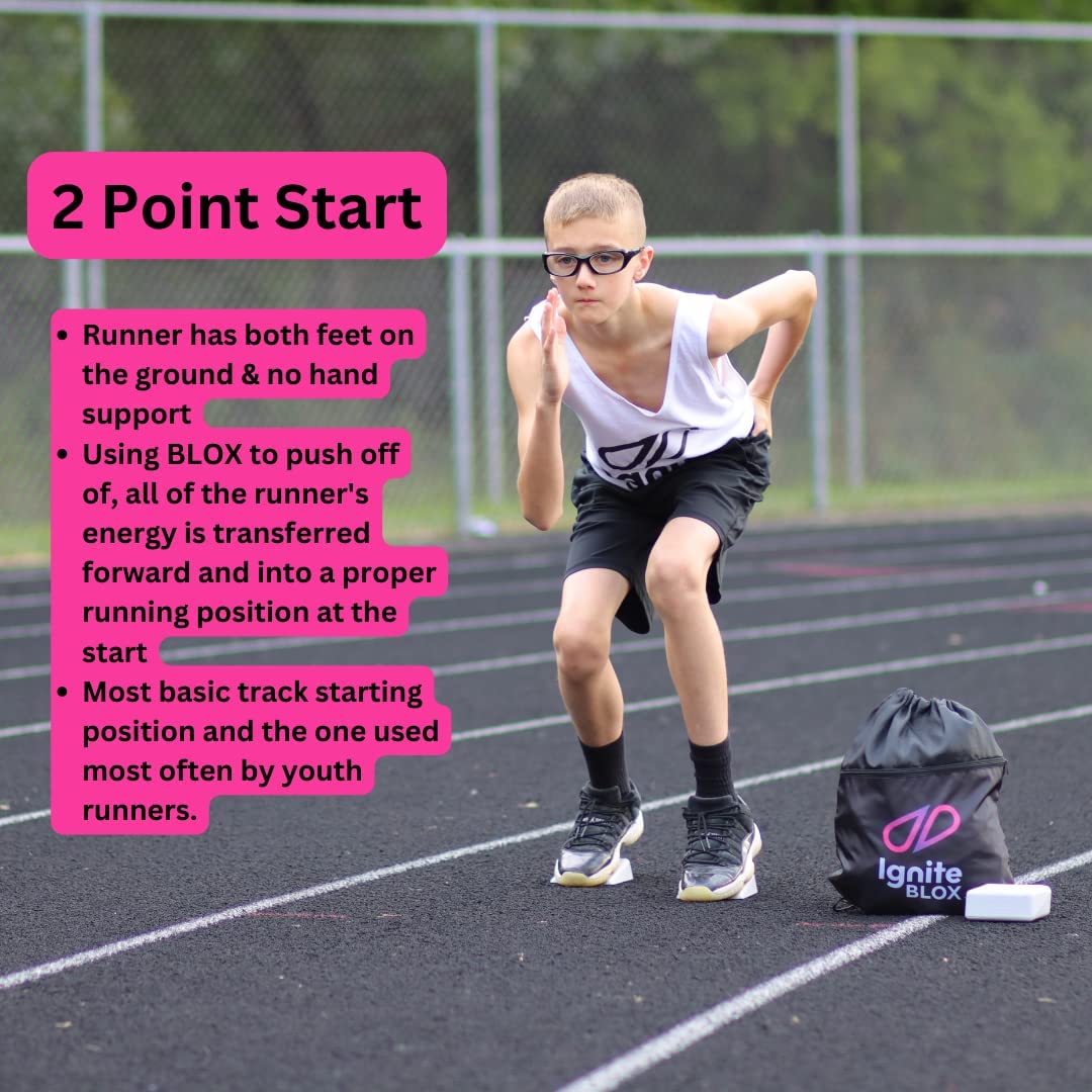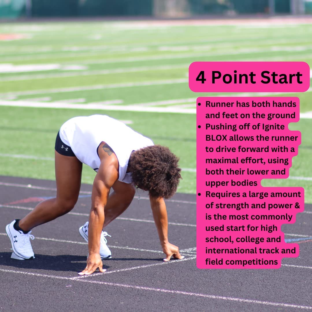 The world’s first and only portable track starting blocks are here! Experience Ignite BLOX - the lightweight, durable, portable, and affordable way to ignite your speed and agility training! Perfect for youth and adults, Ignite BLOX are the most revolutionary track & field accessories on the market. An essential piece of training equipment, Ignite BLOX is the premier speed and agility training block that allows you to “push off the starting line with power” without the hassle of lugging around traditional starting blocks! From football drills to youth speed training, outdoor track practice, or for personal training, Ignite BLOX help you master your 2 point start, 3 point start, and 4 point start stance, all the while assisting in the improvement of your 40 yard dash and sprint times. Refine your starting technique, get the most out of your track practice, improve your fast twitch muscle agility training, and get out of the blocks a step ahead with Ignite BLOX! Lightweight, compact, and ultra-portable, Ignite BLOX are not only easy to carry in your training bag or toss in your duffle on the way to practice, but they’re incredibly durable, too! Composed of long-lasting injection molded plastic, each pair of Ignite BLOX come complete with actual track spikes that can be inserted at a precise angle in the bottom surface, ensuring they dig into the outdoor track surface and slipping or unwanted movement is mitigated. Additionally, slipping off the top surface is never an issue, as a textured knurling finish is permanently molded into the blocks.